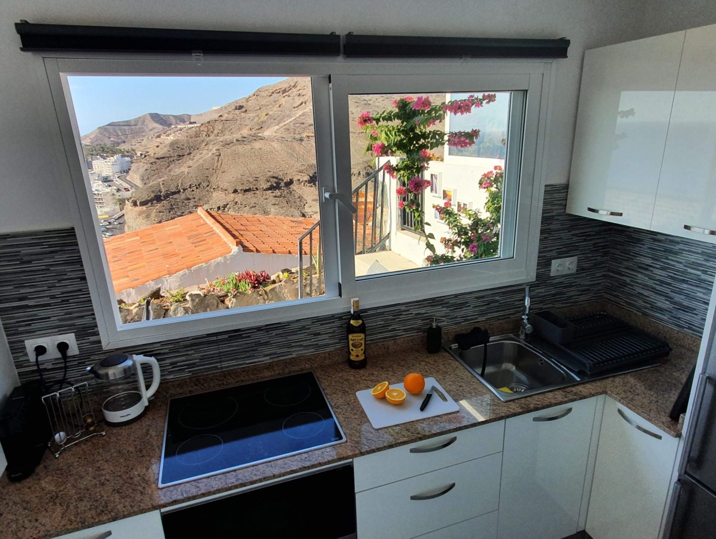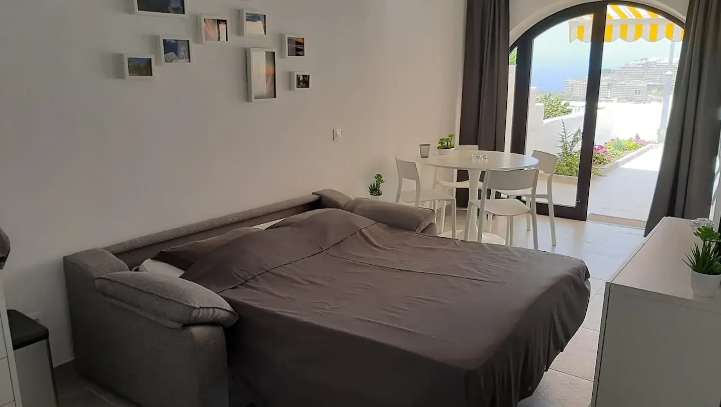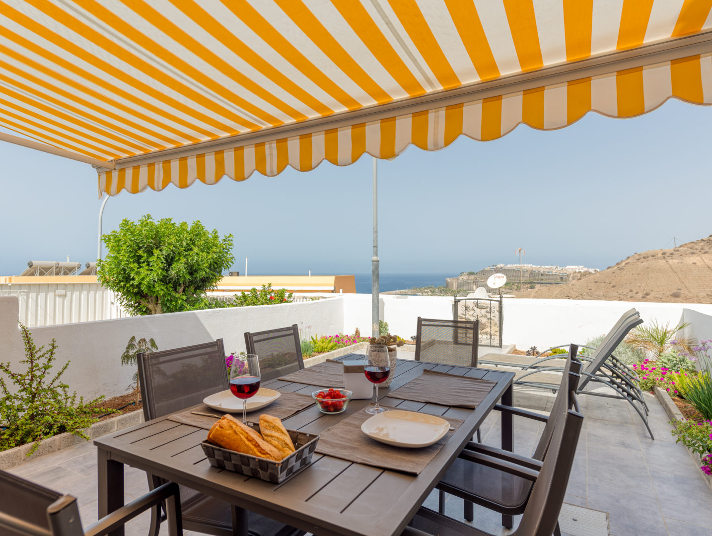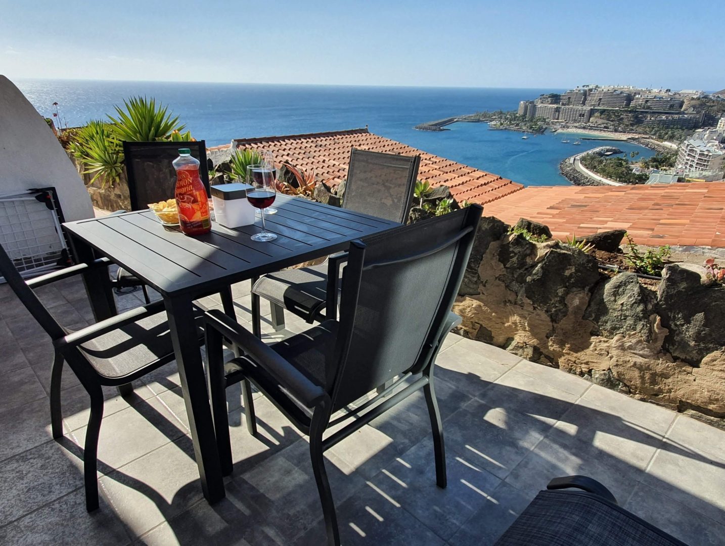 Cozy and modern apartment sunny all day until sunset, 40 m2 for up to 4 people + large terrace-garden of 46 m2. In Los Canarios III, Patalavaca, southwest Gran Canaria, with panoramic views over the sea and the mountains, less than 10 minutes walk from the small beach of Patalavaca, well protected from the wind … Continue reading “Patalavaca 3110 – Sunny all day until sunset”Details