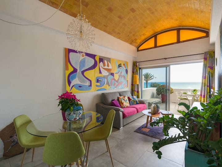 0Beautiful penthouse for up to 4 people, with balcony overlooking the sea in the select small condo AIDA, street Helsinki 1, a quiet and well-kept residence with gardens and pool, with direct access to the pedestrian promenade above the beach, near Maspalomas dunes. AIR-CONDITIONED free access to community pool GAY FRIENDLY FAMILIES with children welcome … Continue reading “AIDA 302 – Beachfront Sea view Penthouse”Details