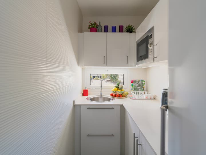 Apartment with balcony-terrace and free fast internet. Comfortable and cozy ideal for 2 people, 1st floor, sunny balcony overlooking the pool and complex, On the first floor with elevator in a very quiet complex. You will enjoy your meals on the sunny, west facing balcony, overlooking the pool and complex. Ideal for remote work thanks … Continue reading “Solymar next to dunes Maspalomas”Details