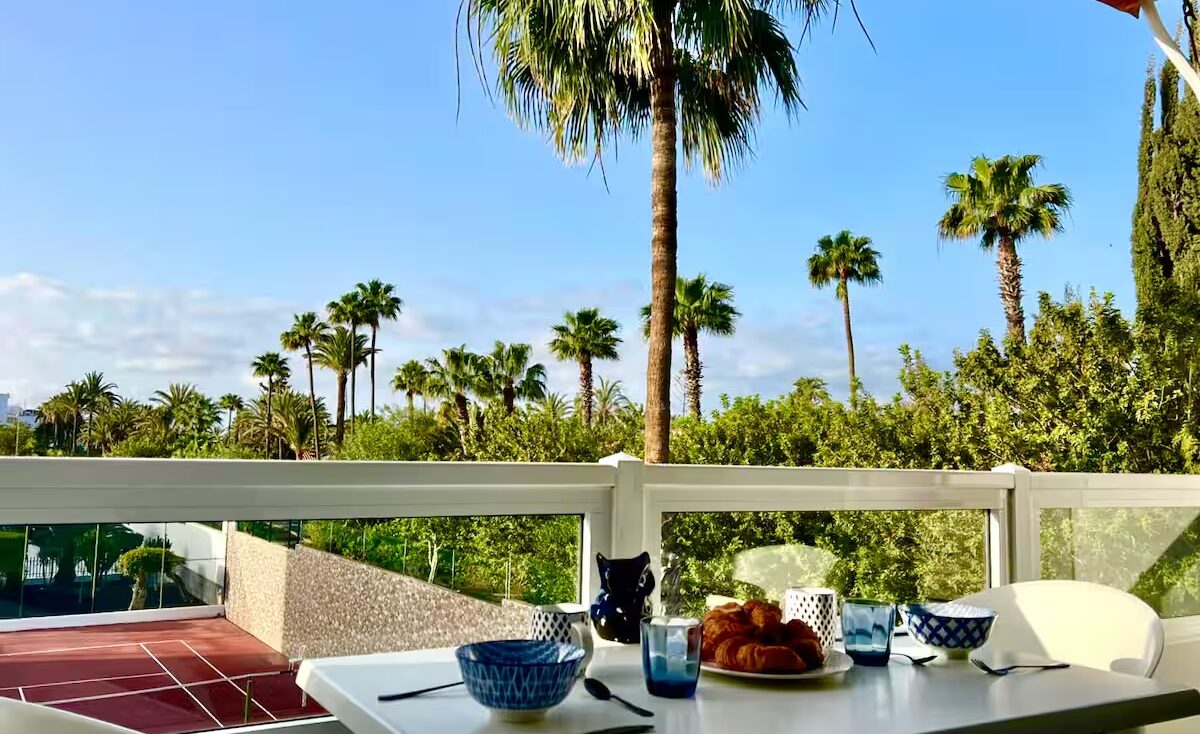 As soon as you enter the apartment, you are immersed in the landscape of gardens and palm trees that surround it. Magical! Sunny, protected from the wind, tranquility, close to the dunes and all services.