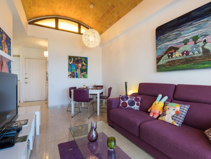 Nice and cosy penthouse of 45 m2 + private balcony of 10 m2 with sea views, facing East, sunny in winter from sunrise until 13:30-14:00. In winter, you can enjoy the spectacle of the sunrise on the sea taking your breakfast on the balcony.