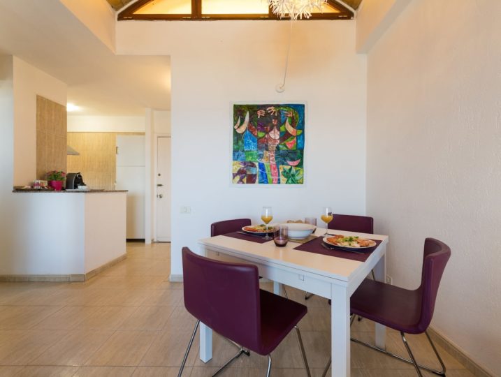 Beautiful penthouse for up to 4 people, with balcony overlooking the sea in the select small condo AIDA, street Helsinki 1, a quiet and well-kept residence with gardens and pool, with direct access to the pedestrian promenade above the beach, near Maspalomas dunes.