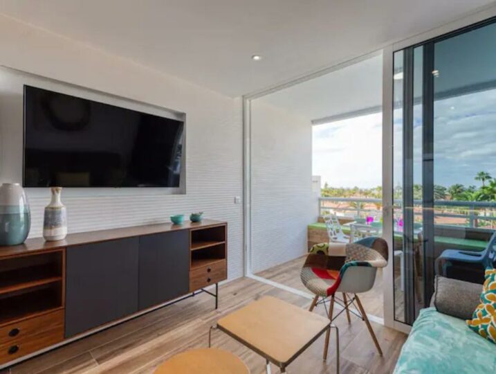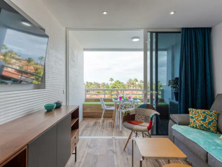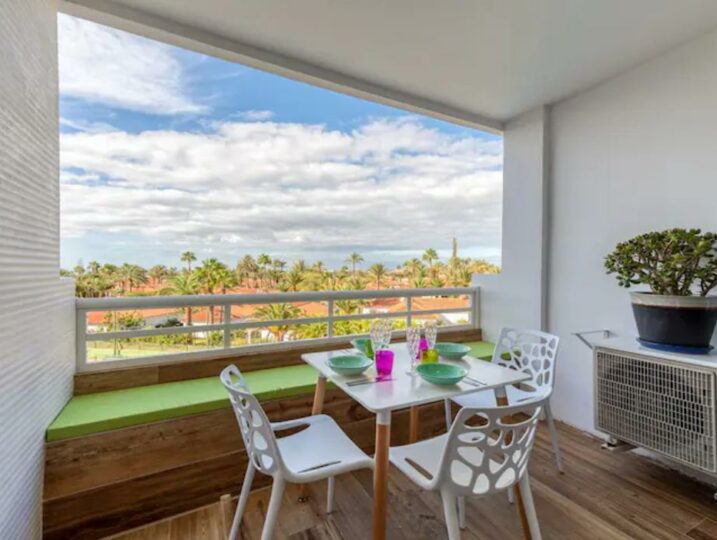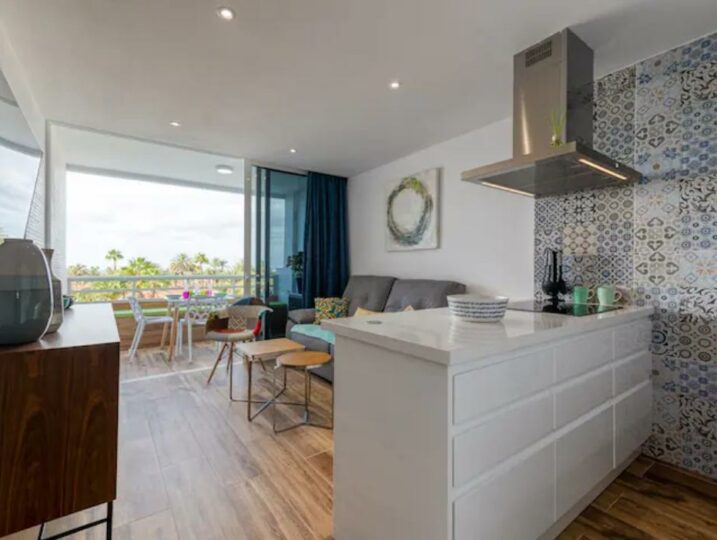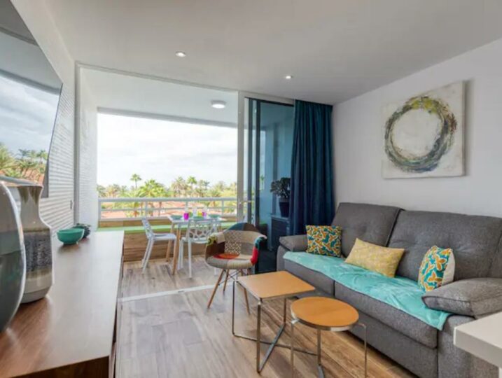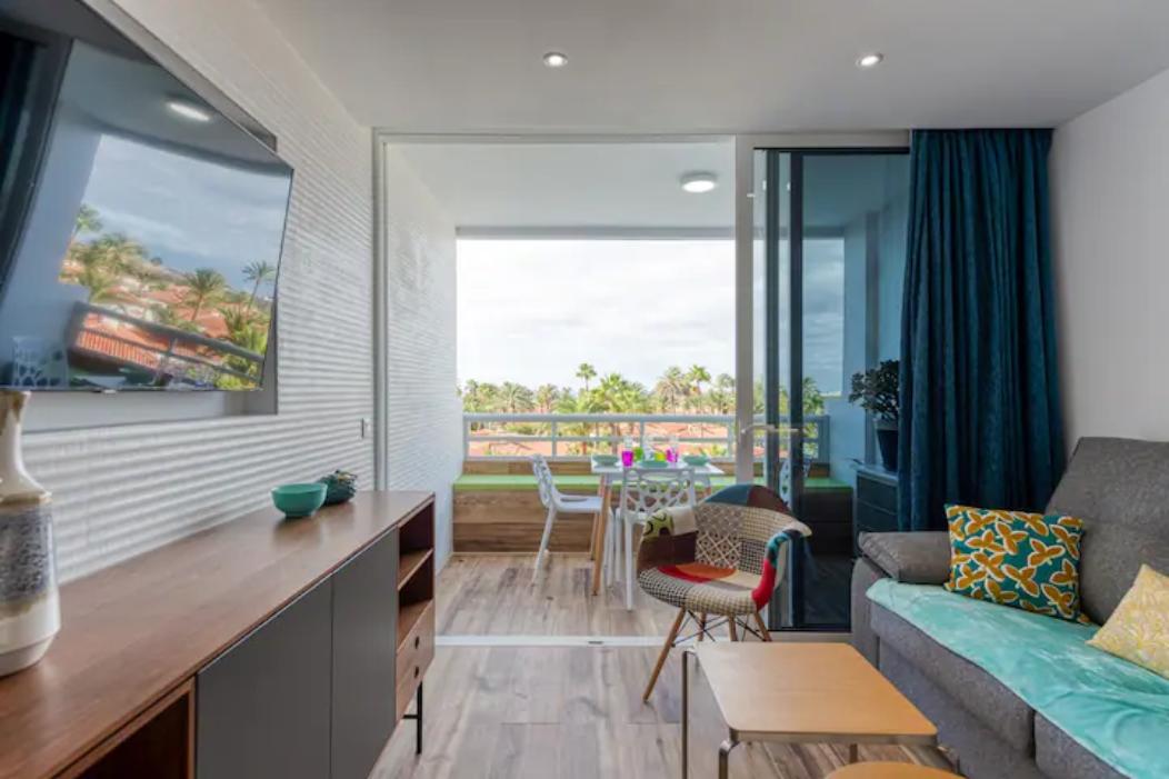 This modern apartment equipped with 300 Mbit/s fiber optic internet is located by the sea near the dunes. It is located 2 steps from the yumbo with a beautiful view of the palm trees and Maspalomas. My accommodation is close to the beach, restaurants, supermarkets, public transport and the nightlife of Playa del Inglés. You will love it.