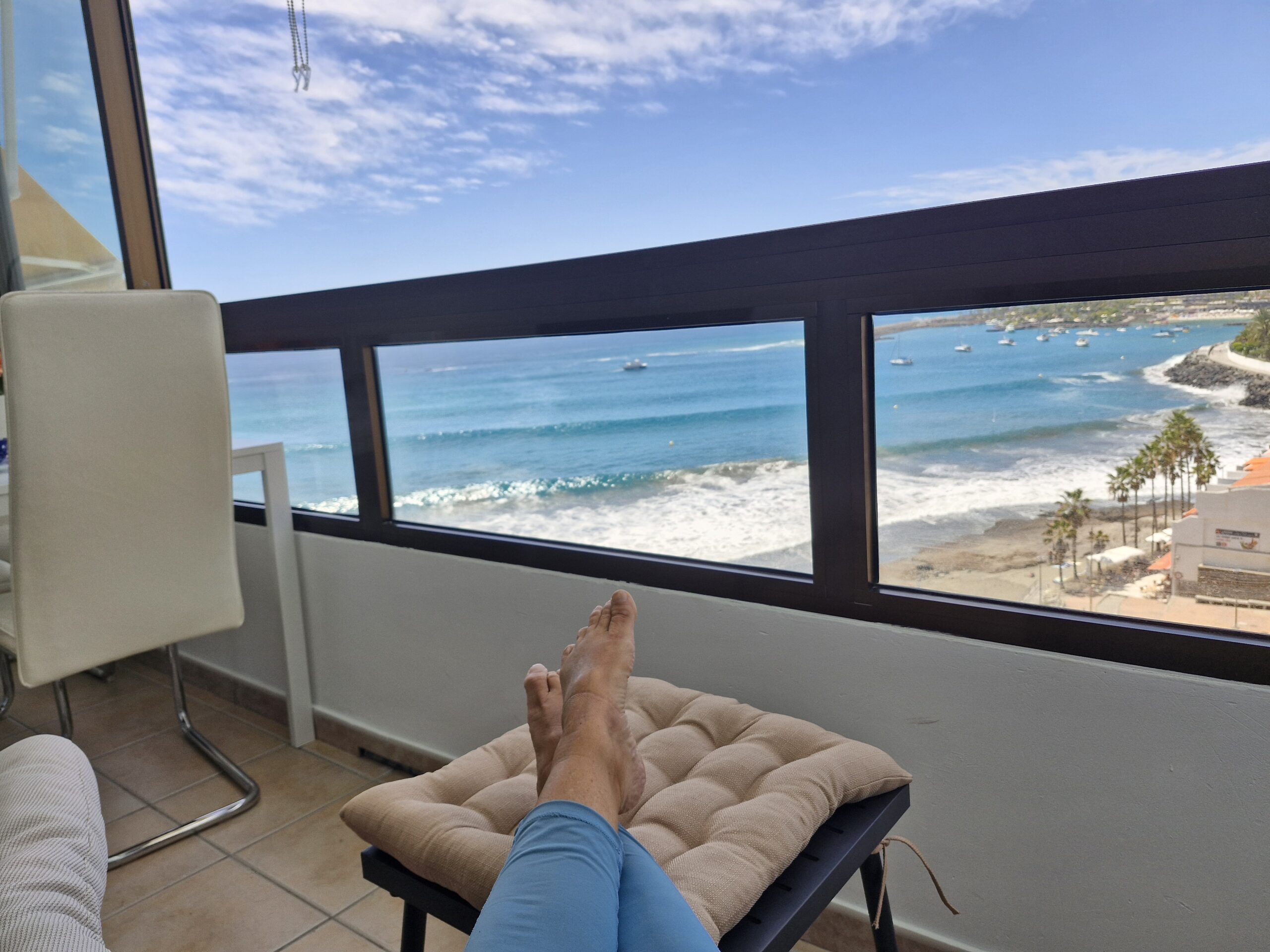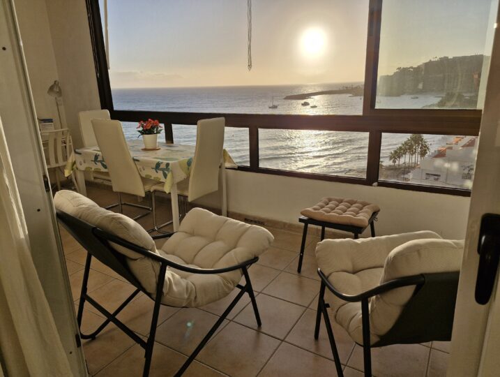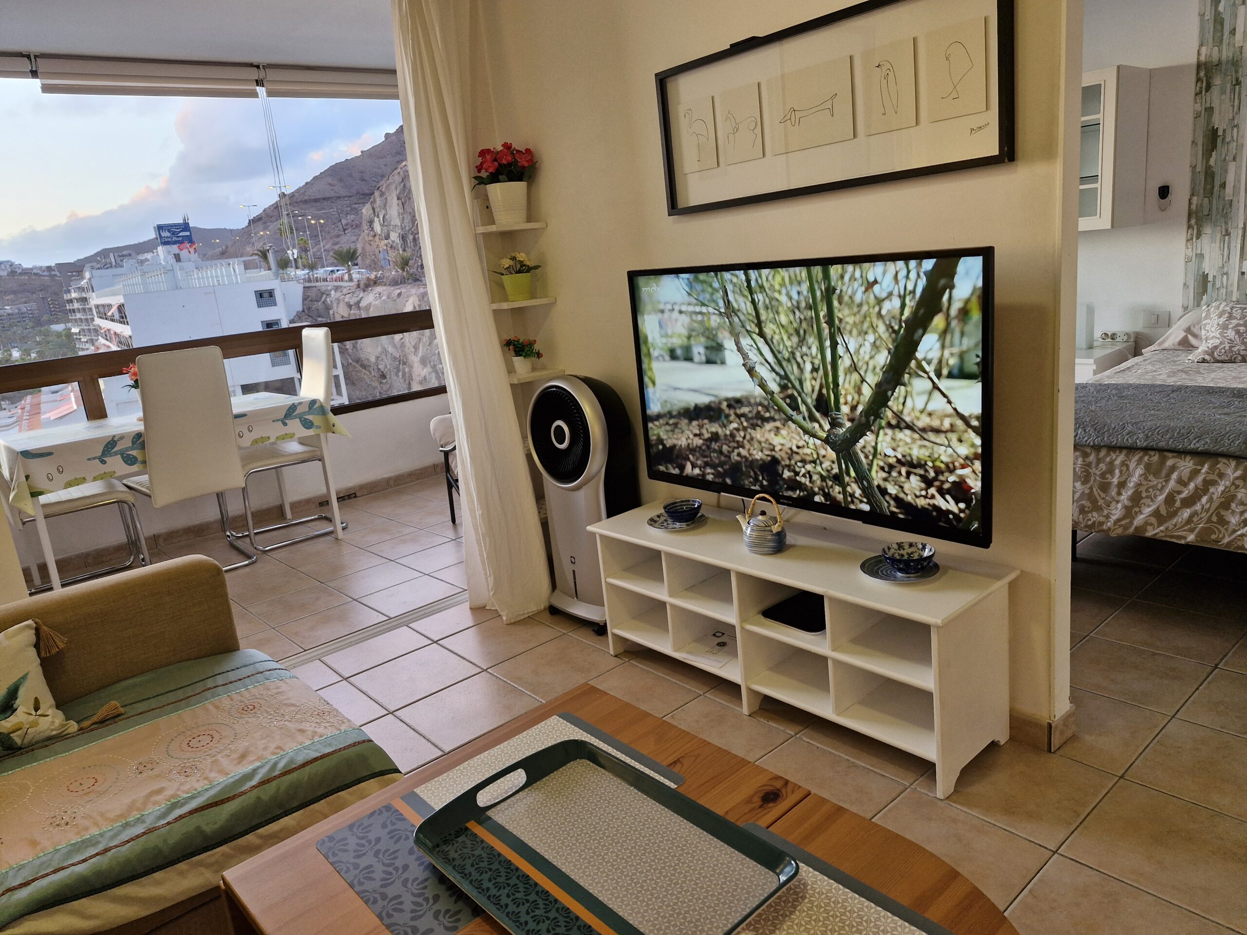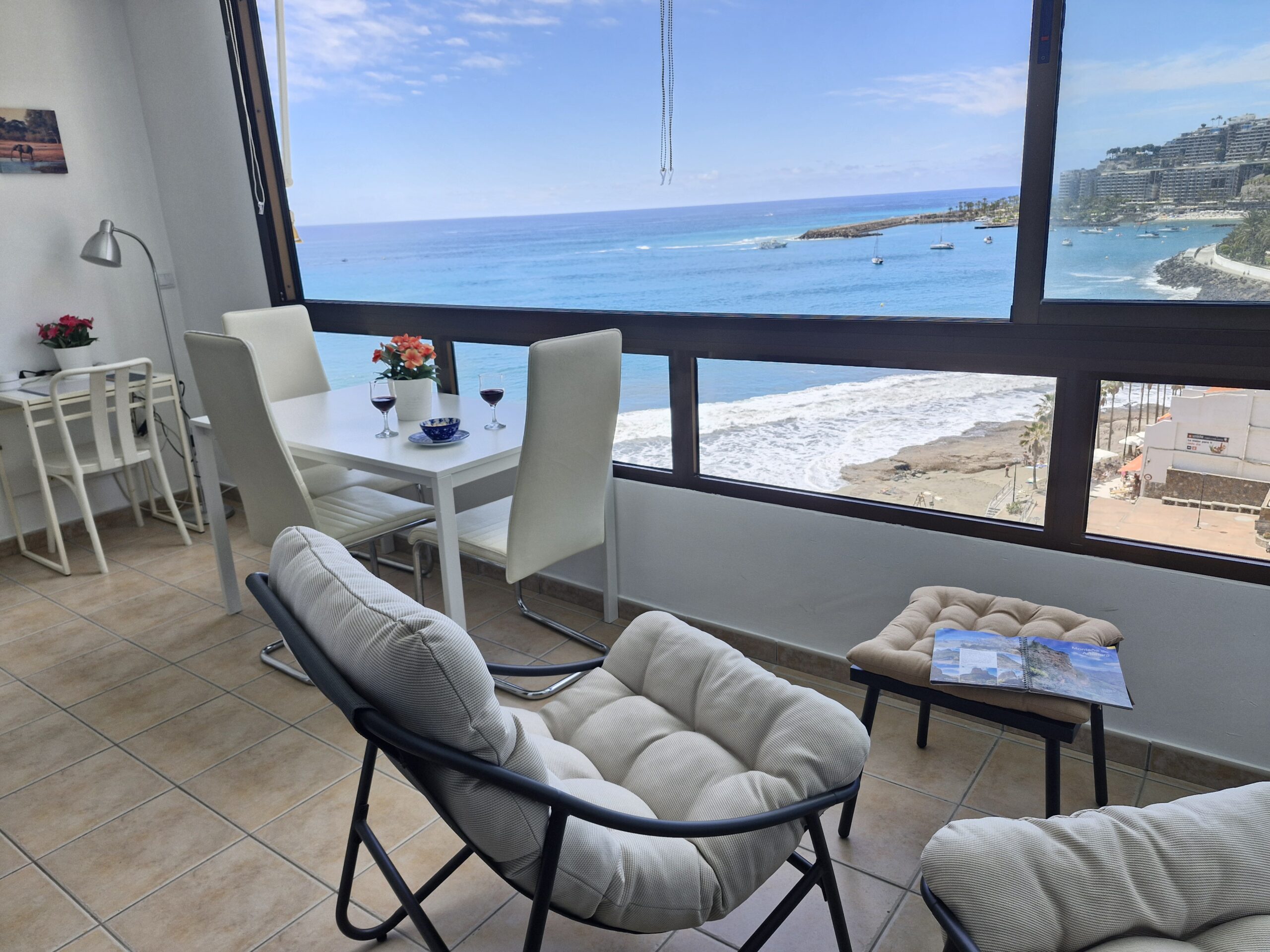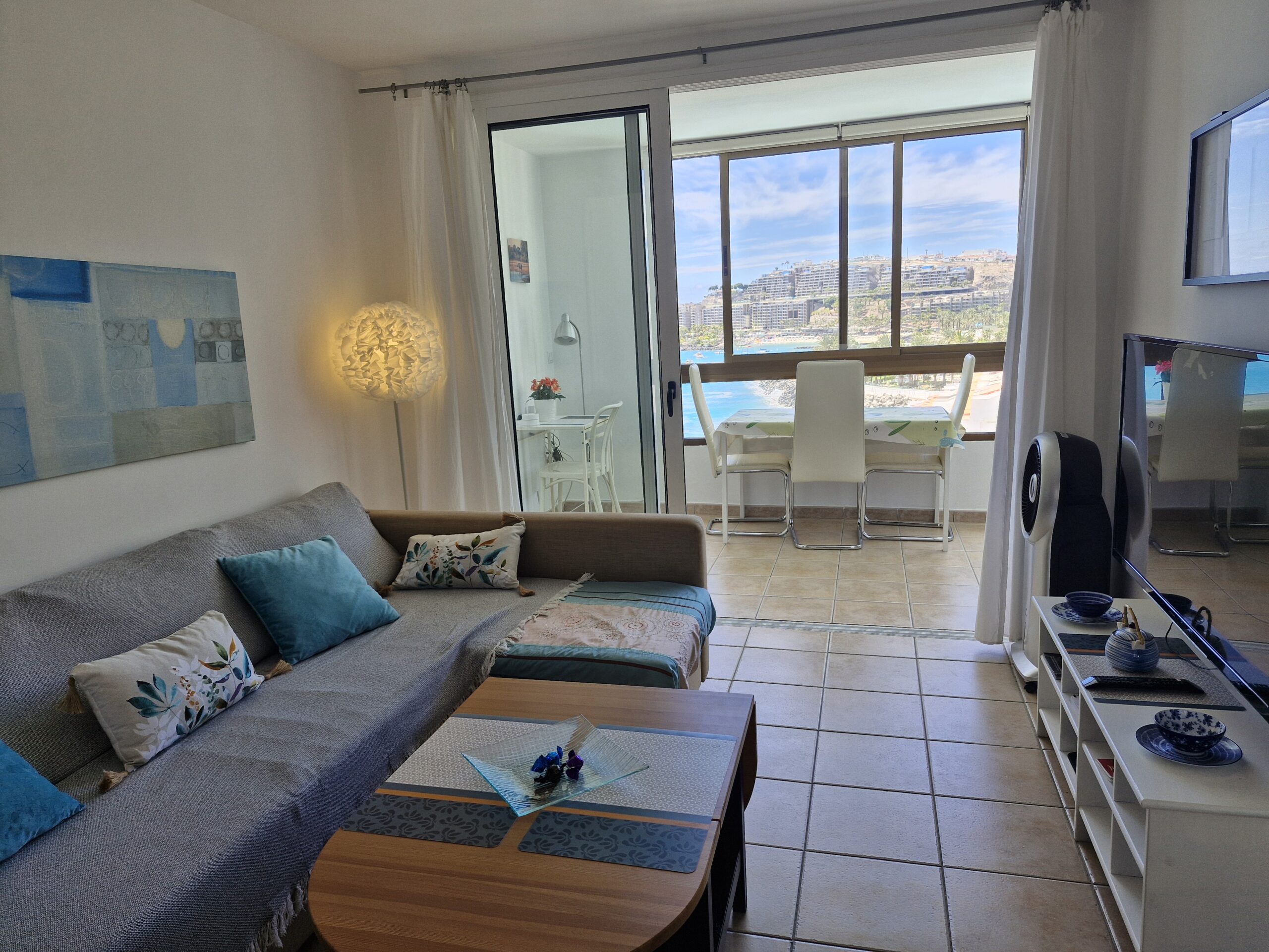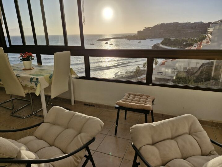 A modern and beautiful apartment with stunning panoramic ocean view, located at the most convenient prime spot in Patalavaca, inside a gated building with direct elevator access to the beach front. It is well equipped with everything you need to feel home. Free WiFi and free private parking on site. Fully equipped kitchen with microwave, refrigerator, toaster and stovetop. 4K smart IP TV with satellite channels.
