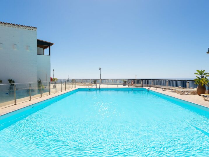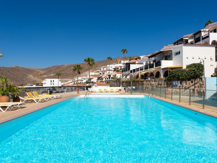 Los Canarios III is a very calm residence for relaxing. The pool is a few steps down stairs. 1 pool for adults 1 small pool for children.