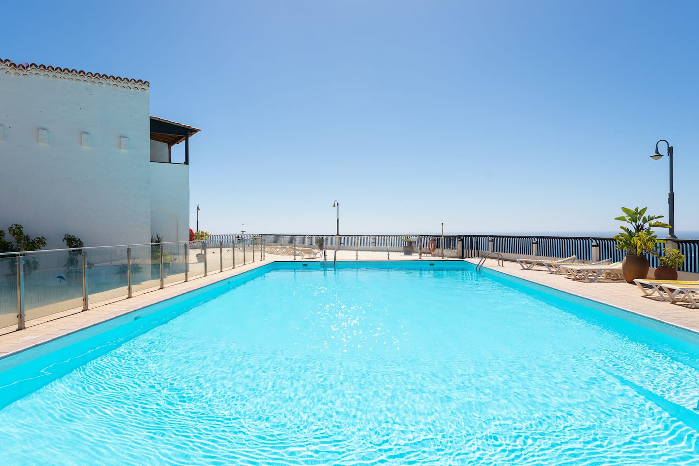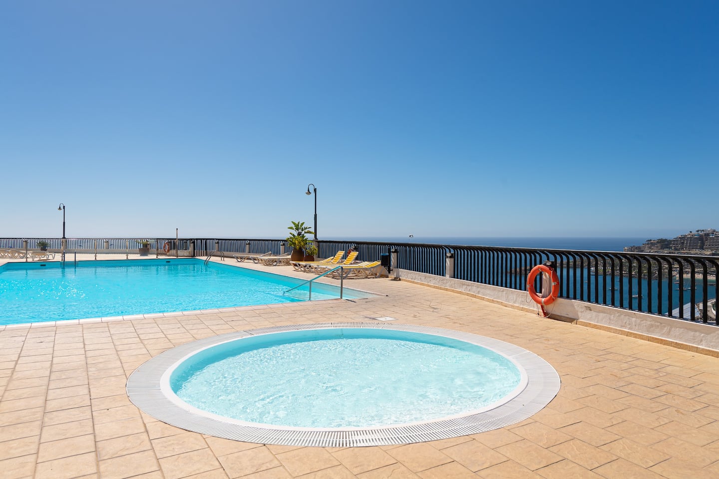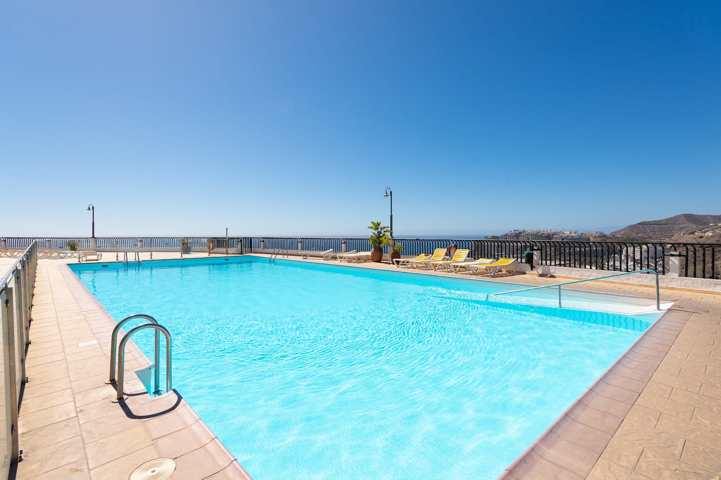 Los Canarios III is a very calm residence for relaxing. The pool is a few steps down stairs. 1 pool for adults 1 small pool for children.