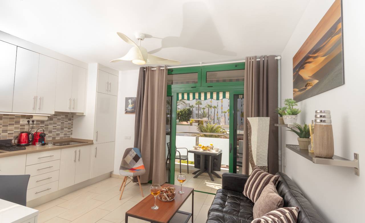 Quality linens and towels. Beach umbrella and beach towels. To 100 metres from the dunes of Maspalomas and the beach and 200 metres from the Cita shopping centre and 300 metres from the Yumbo.